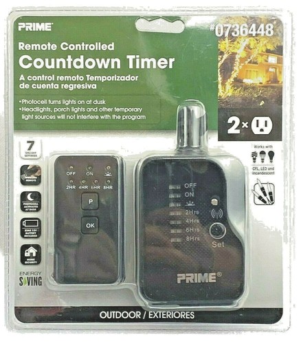 Temporizador de luz de cuenta regresiva enchufable PRIME de 2 tomacorrientes con control remoto inteligente inalámbrico